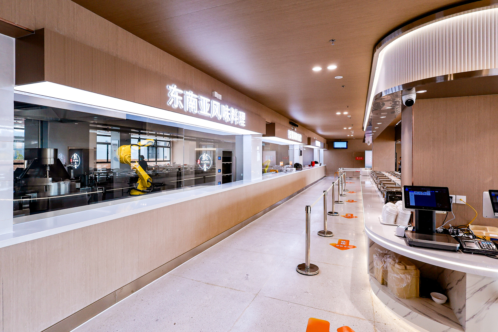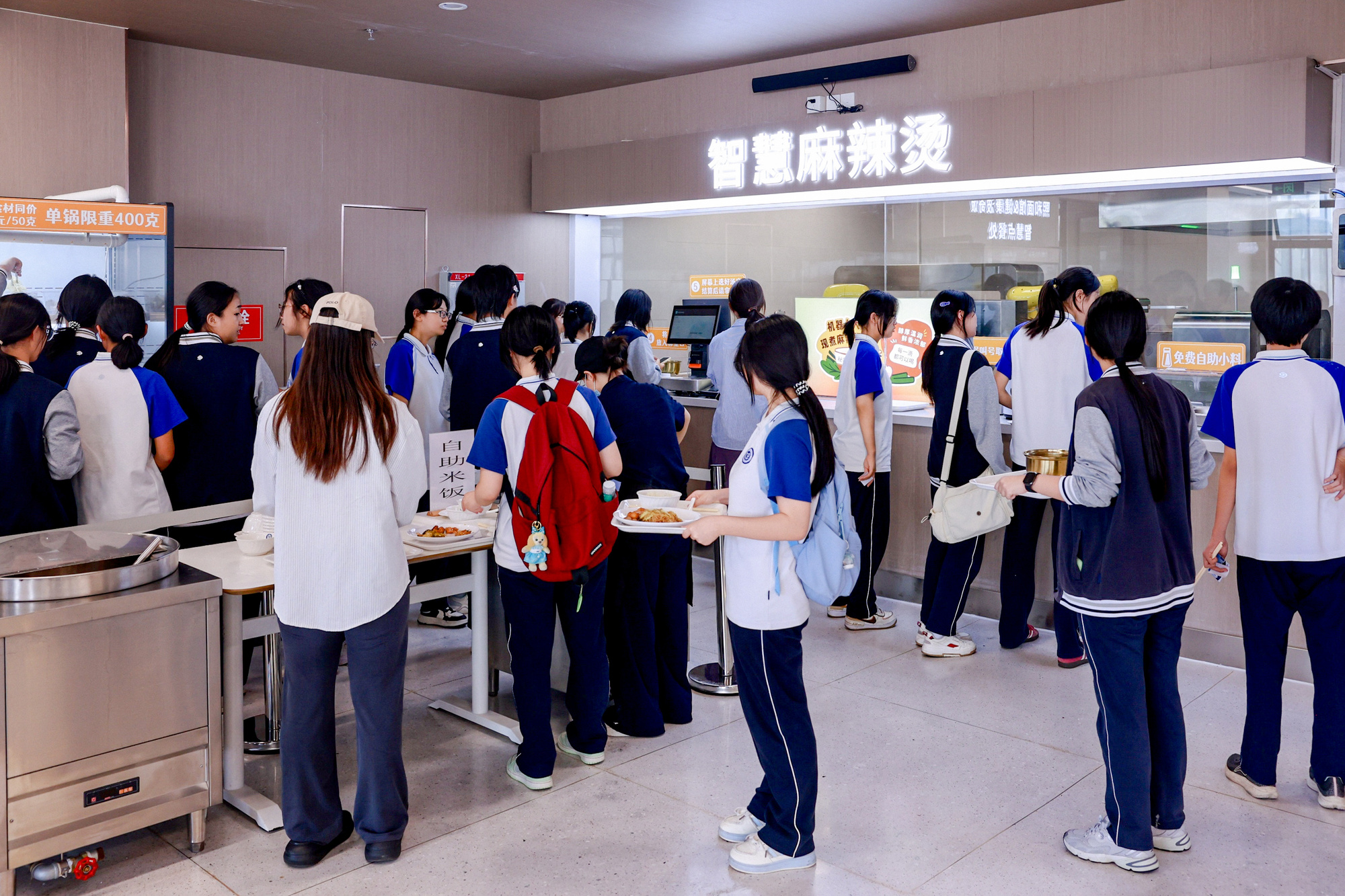 钱皓文说:“现在食堂加了智慧麻辣烫档口,窗口是透明的,让我们看到做菜的整个过程,包括数据算法调试、支付系统都是AI的。一个窗口,机械臂有好多个,排队也不用太多时间。”