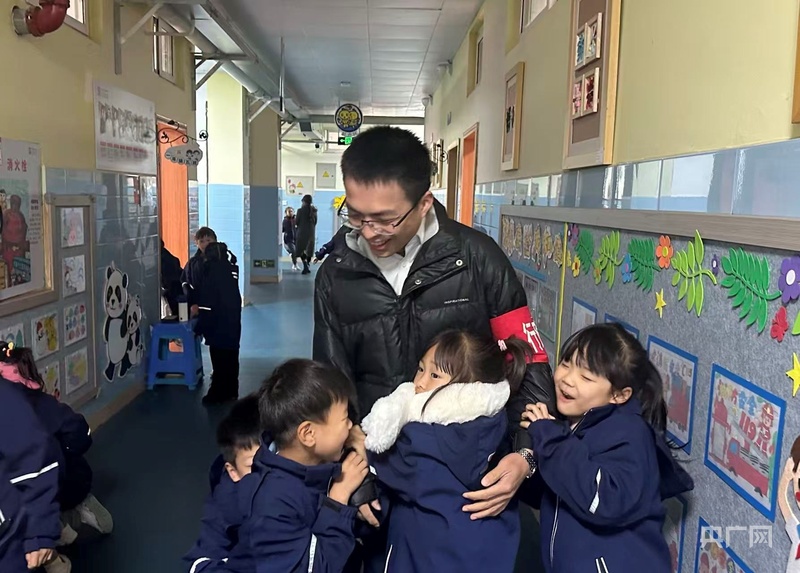 课堂内外的曾老师备受贯通班孩子们的喜欢(记者韩雪莹 摄)
