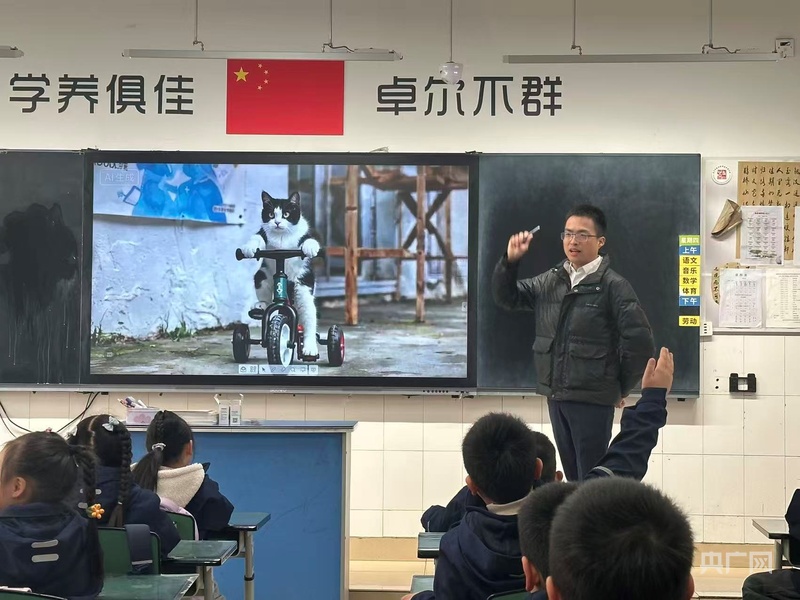 成都市青羊区教科院附属实验学校一年级四班信息科技课的课堂上,任课教师曾王亮从一只由AI生成的“会骑车的小猫”开始,把孩子们引入人工智能的世界。信息科技课一般在三到八年级单独开设,给一年级的孩子上信息科技课,这是曾王亮执教七年来的首次。